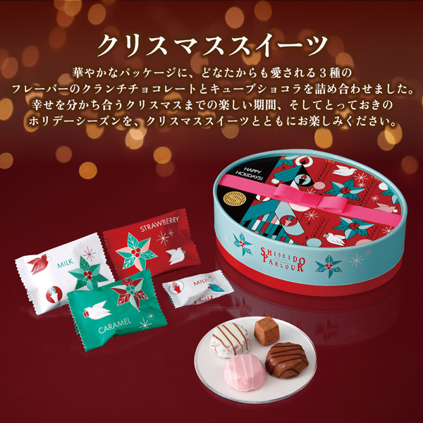 幸せを分かち合うクリスマスまでの楽しい期間、そしてとっておきのホリデーシーズンを、3種のフレーバーのクランチチョコレートとキューブショコラとともにお楽しみください。