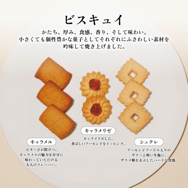 かたち、厚み、食感、香り、そして味わい。小さくてもひとつひとつ個性豊かな菓子としてそれぞれにふさわしい素材を吟味して焼き上げました。
